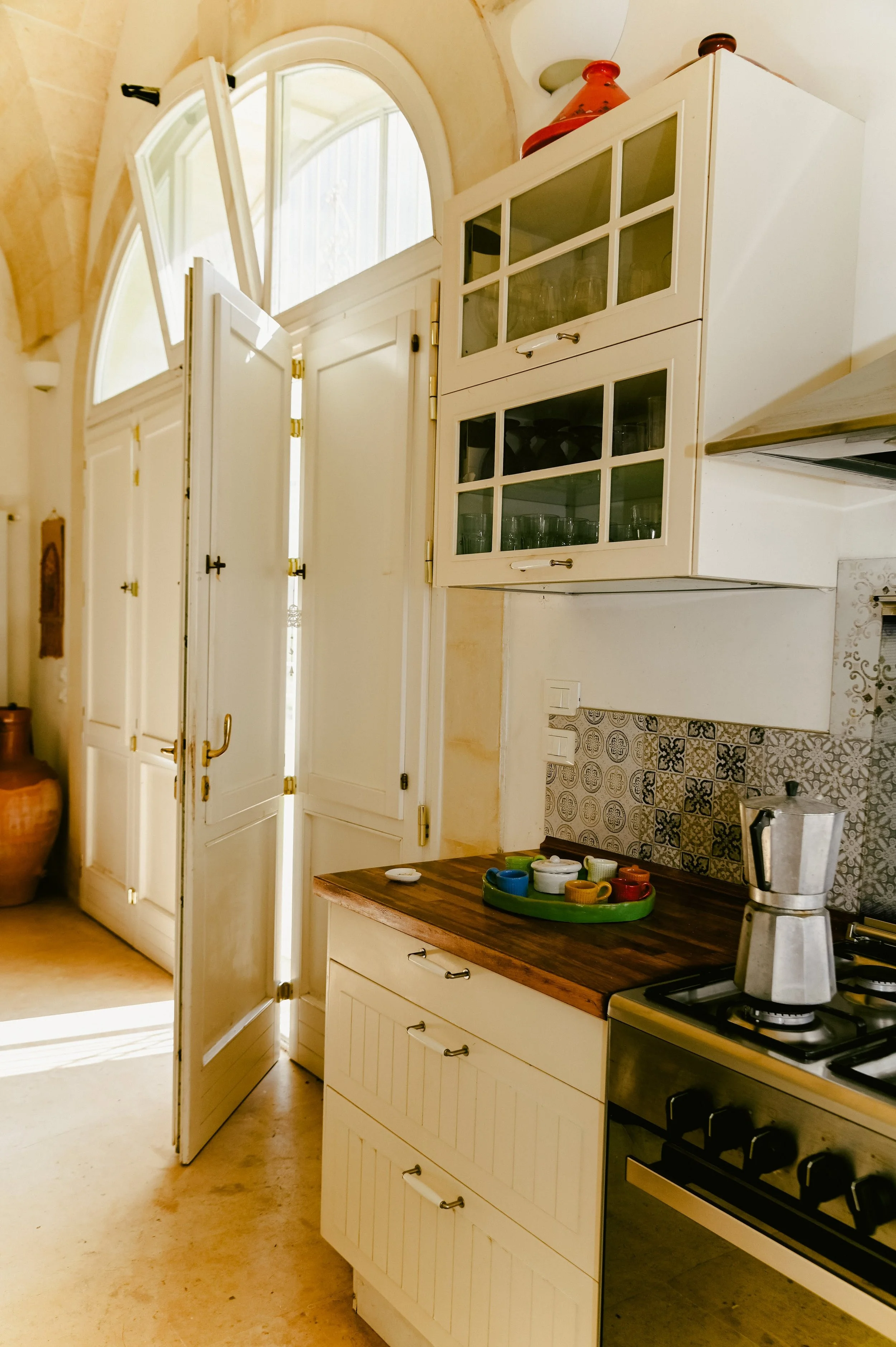 Step into the soul of the masseria – a kitchen and dining space where Salento’s flavors and traditions come alive. With rustic stone walls, artisanal tiles, and a welcoming dining table, this is a place to prepare fresh local meals, gather with loved ones, and savor the simple joys of Italian life.